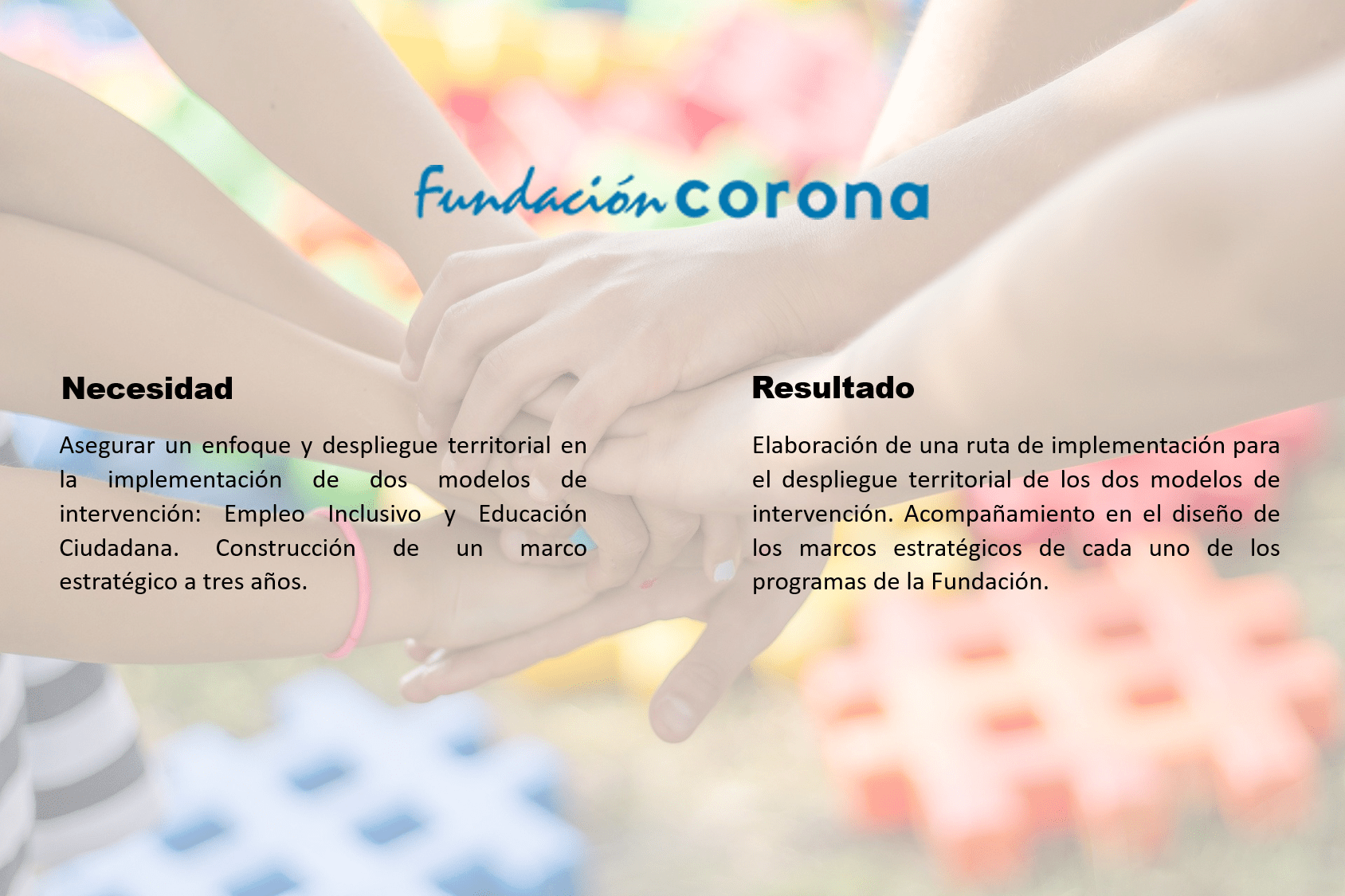 Ponemos a disposición de los proyectos una extensa red de relaciones que nos posibilita generar lazos de confianza y colaboración.